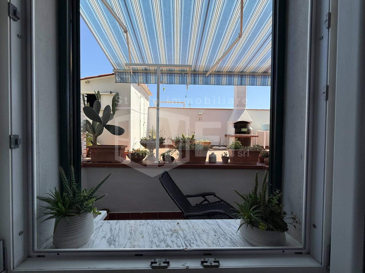 L’abitazione principale si sviluppa interamente al piano terreno, caratterizzata da spazi comodi e ben distribuiti. L’ingresso si apre su un ampio salone doppio con affaccio su balcone vista mare, ideale per godersi il panorama e i tramonti. La cucina, luminosa e ben organizzata, ha accesso diretto a una terrazza privata di circa 50 mq: uno spazio riservato, perfetto per pranzi all’aperto e momenti di relax. La zona notte comprende due camere da letto e un bagno finestrato.